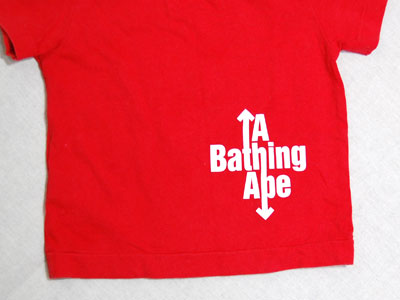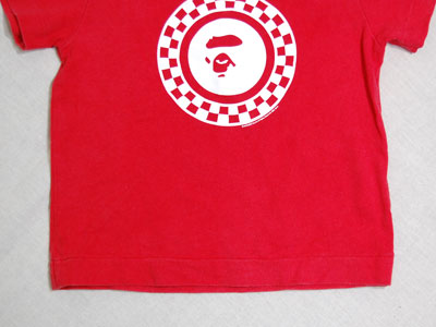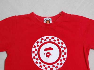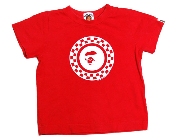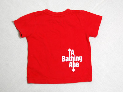bape kids!胸に大きく猿が!肩・バックにもロゴが入っています!男の子・女の子どちらにも合う赤Tシャツです!