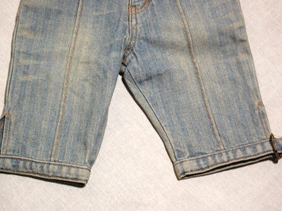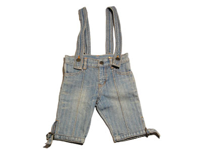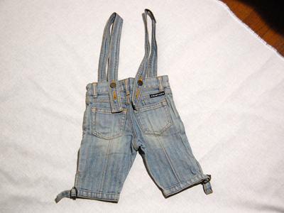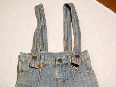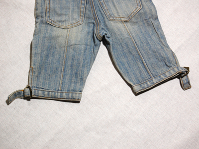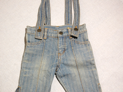 肩で止めるタイプのジーンズパンツ!色落ち具合がとてもいいです!